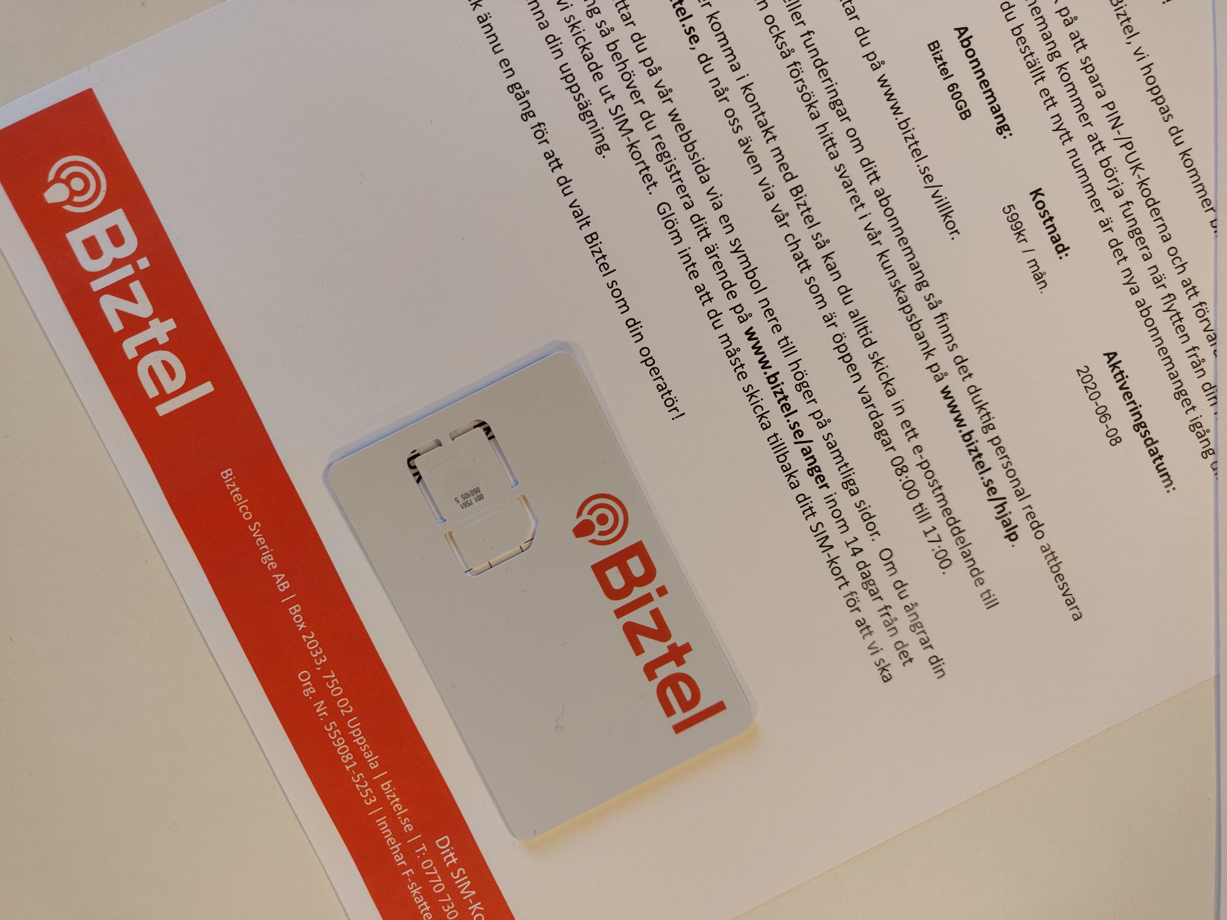 | BizTel (Endast SIM-kort) | 45 | Samtal och SMS / MMS debiteras till standardpriser |